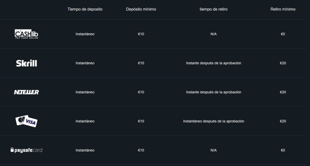 | 💳 Métodos de Pago | Skrill, Neteller, Visa, MasterCard, Jeton, entre otros |