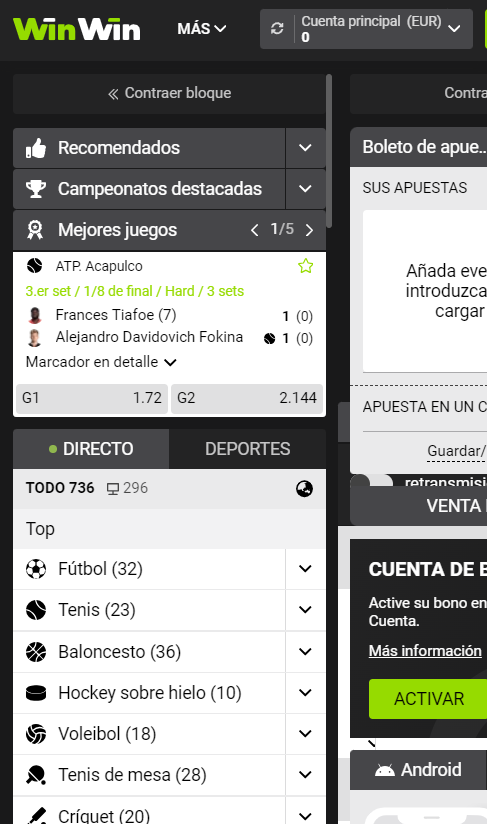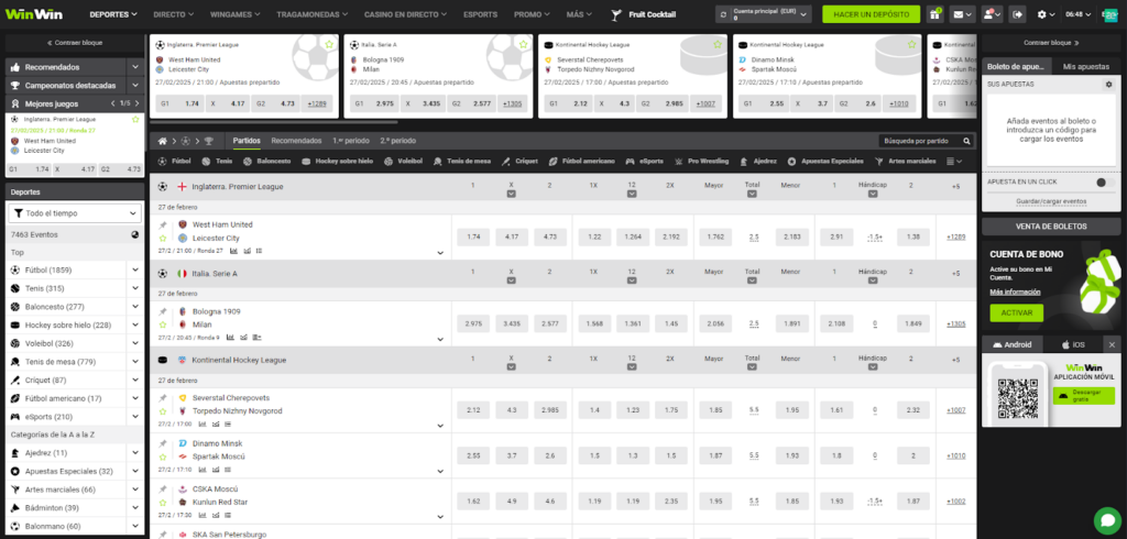 Los aficionados a las apuestas deportivas encontrarán en WinWin Casino una plataforma completa con miles de eventos en vivo cada mes.
